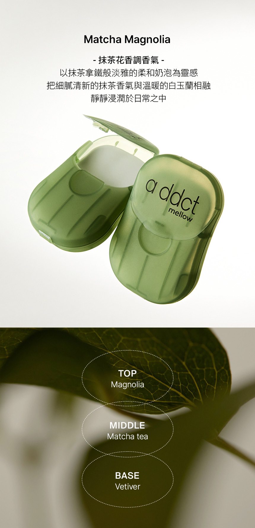 把細膩清新的抹茶香氣與溫暖的白玉蘭相融